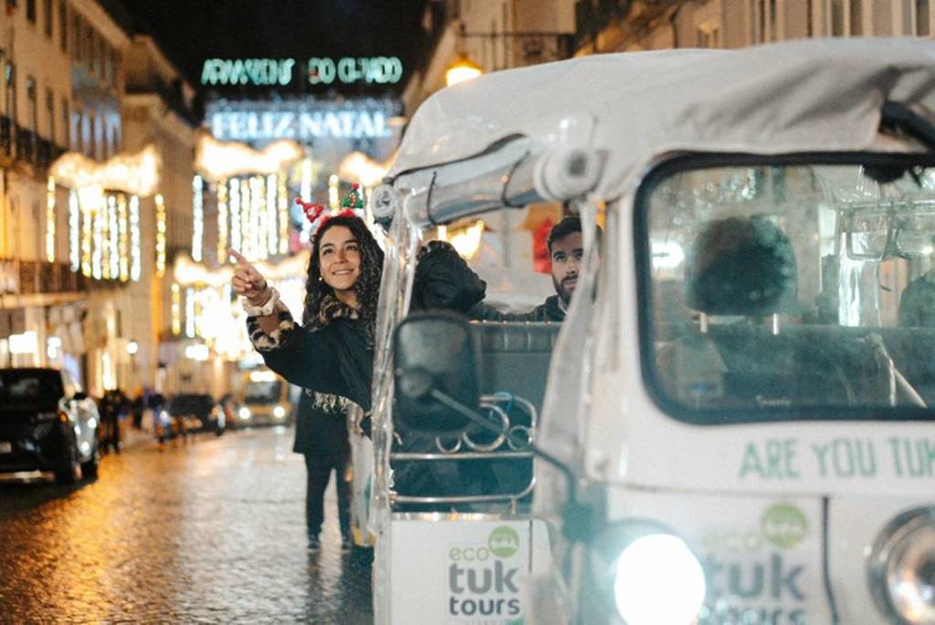 Lichter, der unwiderstehliche Duft von heißer Schokolade und Weihnachtsmärkte erfüllen die Stadt Lissabon in der Weihnachtszeit mit Farbe, Freude und Geschmack. Das Beste daran ist, dass es keinen Mangel an Möglichkeiten gibt, diese Zeit des Jahres auf eine andere Art zu erleben, wie zum Beispiel die „Christmas Lights Eco Tuk Tour“.
