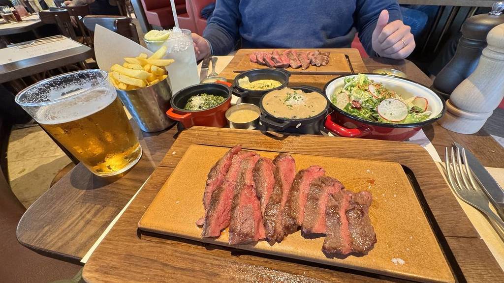 Nel complesso, vale la pena provare la bistecca in questo ristorante, molto tenera, con accompagnamenti deliziosi e un prezzo molto competitivo (per la zona): bistecca BLADE + 1 salsa + patatine fritte + birra (imperiale 33cl) per 17€, non male!